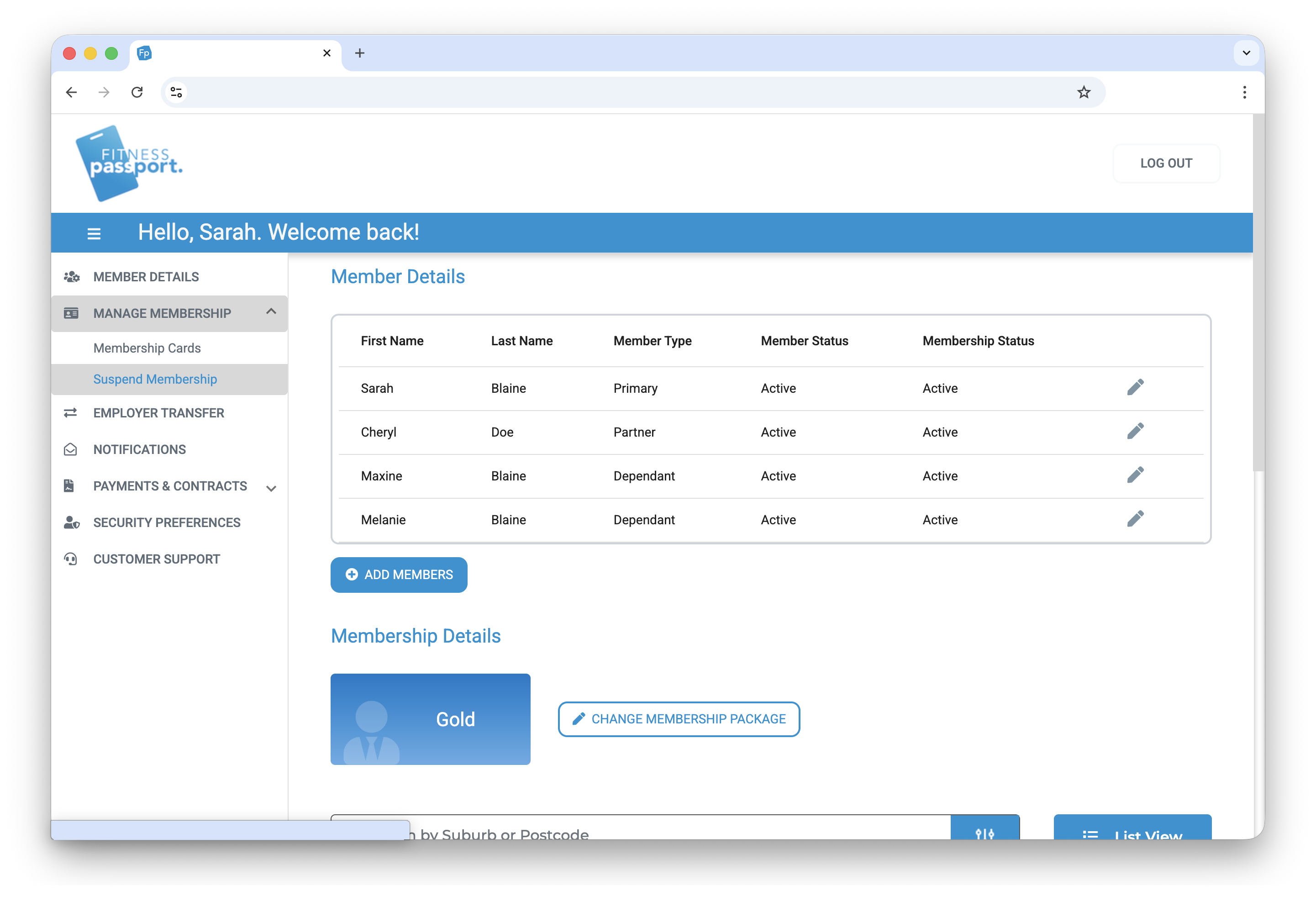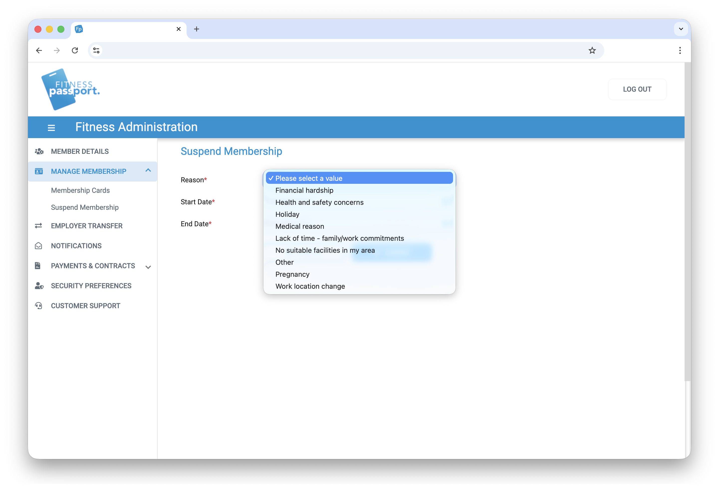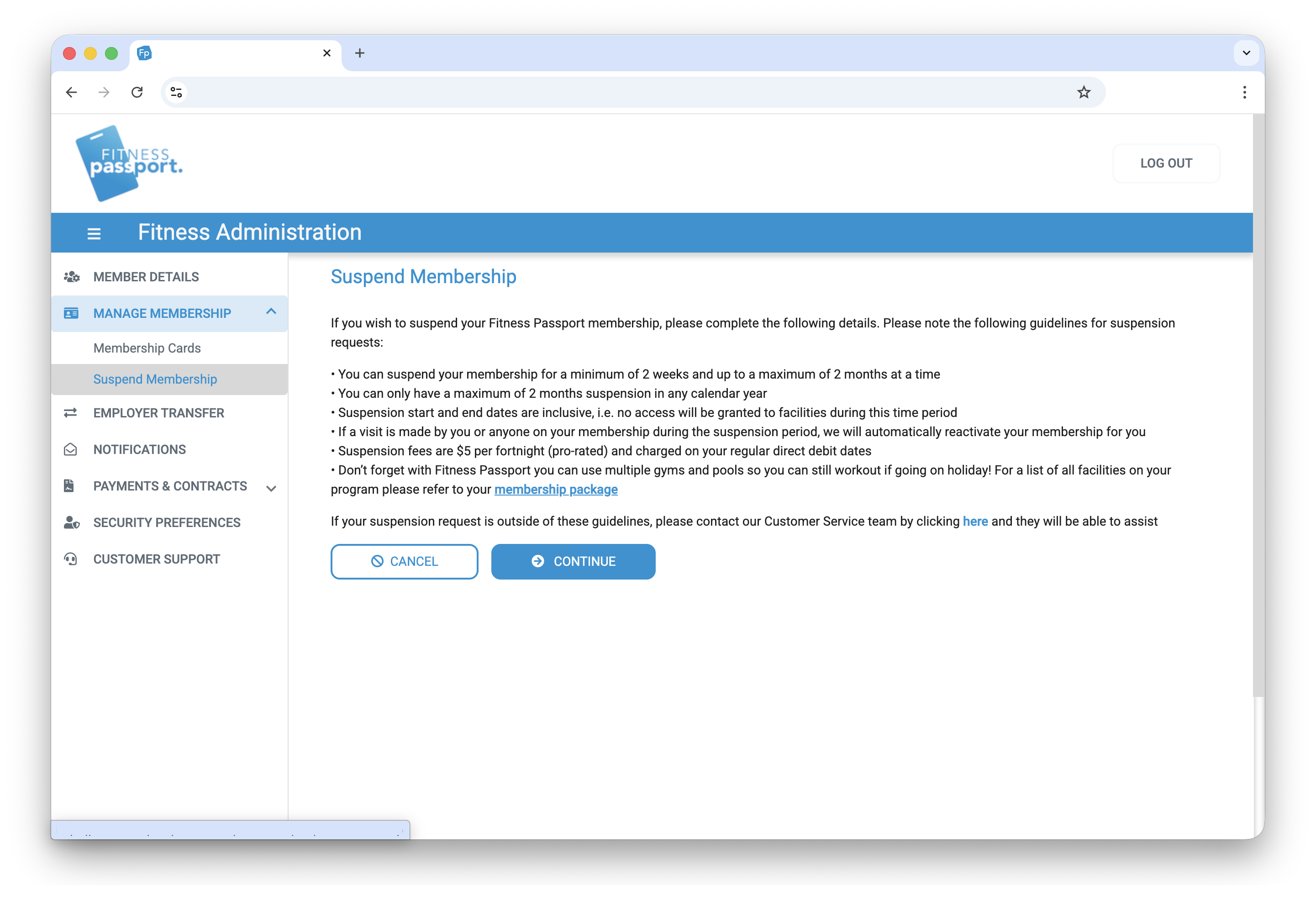 - Click “Suspend Membership” under “Manage Membership” on the left
